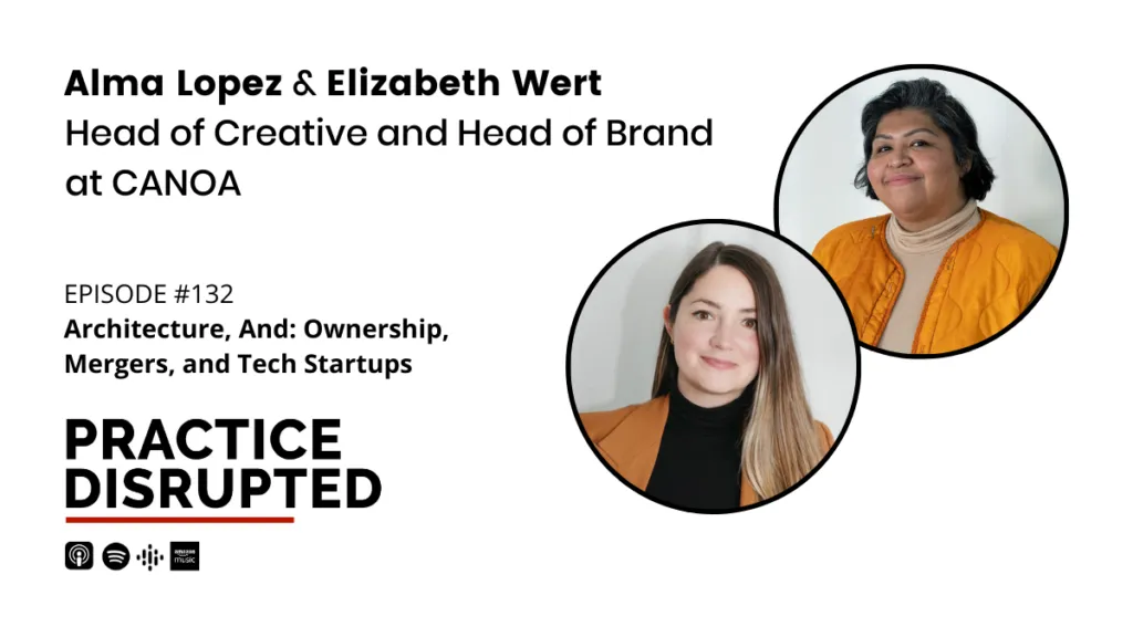 On this episode of Practice Disrupted, we sit down with Alma Lopez, Head of Creative at CANOA, and Elizabeth (Liz) Wert, Head of Brand at CANOA, an AI-assisted collaborative online tool for designers, to learn about their journey from business owners to company mergers, how a tech startup forces efficiency, and the ways CANOA serves as an inspiration point for both its users and an evolving industry.