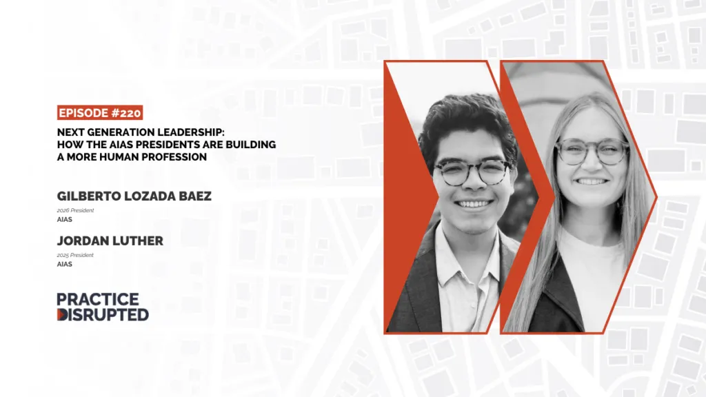 In a special episode marking the end of her term as AIA President, Evelyn Lee hosts a candid conversation about the future of architectural leadership with two emerging voices: Gilberto Lozada Baez, the 69th president of the American Institute of Architecture Students (AIAS), and Jordan Luther, the immediate past president of AIAS and the student director on the AIA board.