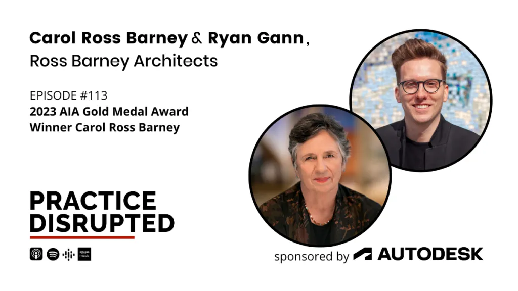 What can we learn from 2023 AIA Gold Medal Award Winner Carol Ross Barney?Join us this week on the show as we speak with Carol Ross Barney, the 2023 AIA Gold Medal winner. Ryan Gann, a former employee of Carol’s and one of her students, will be our facilitator. Get ready to be inspired by a unique conversation that only happens between two individuals who have a great deal of respect for each other and have worked together for many years.